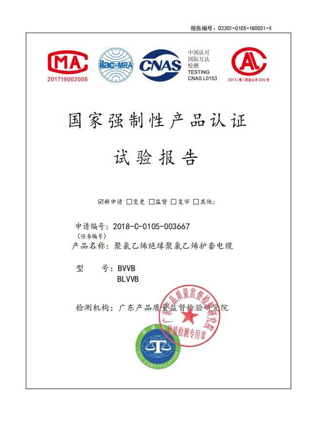國家強(qiáng)制性產(chǎn)品認(rèn)證實(shí)驗(yàn)報(bào)告
